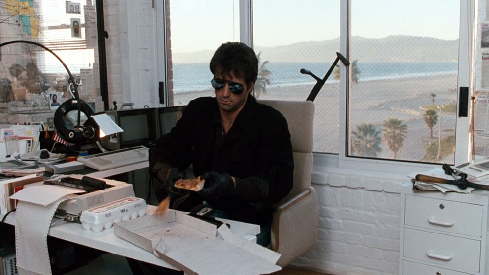 What sets Cobra apart from the aforementioned Raw Deal, however, is how director George P. Cosmatos indulges horror conventions alongside the more obvious crime elements. His film takes up at once the traditions of the poliziottesco, and the giallo. The narrative crux sees Stallone’s character taking on a bizarre cult of axe-wielding psychopaths. With much of its action taking place at night, in dimly yet colorfully lit interiors, Cobra calls to mind the films of Dario Argento and Lucio Fulci, likewise it matching its protagonist with mysterious, leather-glove-clad, killers.
