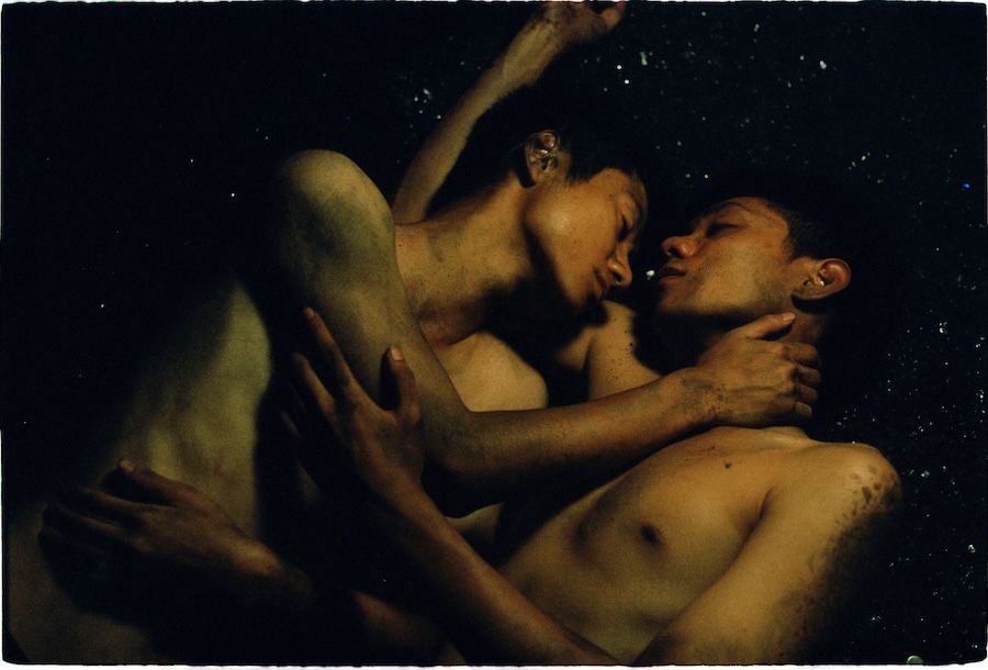 Viet and Nam is set in a Vietnamese industrial town in 2001. The film opens on a dark, underground shot of sweaty, soot-covered Viet (Dao Duy Bao Dinh) and Nam (Pham Thanh Hai), a pair of coal miner paramours in their mid-twenties, weary from their dangerous work. Although they are confined to a tight space, the darkness of the coal mine, contrasted by reflecting light, makes it look like they are making love among the stars. Thunderous explosions detonate in the background, but the two men appear comfortable in each other’s arms. Writer-director Truong Minh Quy’s delicate balance of silent stillness with ambient soundscapes separates Viet and Nam from more traditional postwar narratives, such as 2006’s Journey from the Fall, which was not shot in Vietnam and relied more heavily on harrowing psychological elements to depict a more melodramatic vision of postwar Vietnamese life. However, both films were ultimately censored by Vietnamese authorities. Shot on 16mm film, Quy’s visual poem is split into two parts: the first, a subterranean queer love story; the second, a postwar ghost story. These narratives are separated by a title card, but influence each other in inextricable ways.